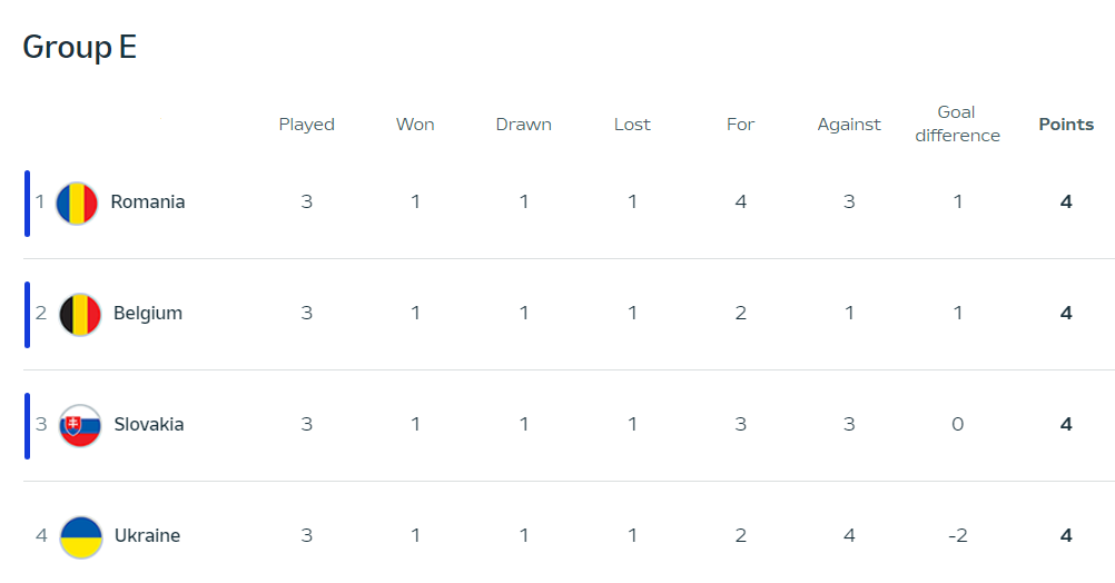 확실히 뛰어난 경기력이 느껴지는 건 첫번재 경기뿐이었고 생각보다는 우크라이나가 약했다. 슬로바키아를 제압하긴 했지만, 완벽하게 무너진 모습을 또 벨기에전에서 보였던 것이 루마니아이다. 신뢰할 수는 없는 팀이다.