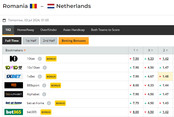 네덜란드가 D조의 강자들 (프랑스, 오스트리아) 을 상대하는 것보다는 수월한 16강전이 될 것으로 보이며, 폴란드가 선전했지만 패한 것처럼 루마니아 역시 그렇게 까다로운 상대는 아니기에 해 볼만한 판단을 오즈메이커들은 하고 있다.