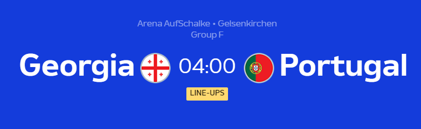 조지아는 포르투갈을 반드시 이겨야 하고 (무승부는 의미가 없다), 포르투갈은 조1위 확정으로 서브자원들을 투입할 수 있을 것으로 보인다.