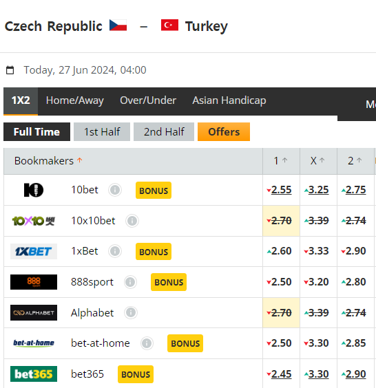 배당은 이겨야 하는 체코에게 우호적인 배당을 부여하였다.