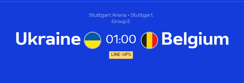 유로2024, 우크라이나 vs 벨기에 (조별예선 E조)