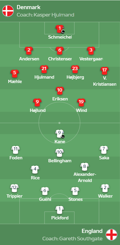 덴마크 축구가 2020년 이후 잉글랜드 상대로 1승2무로 우위를 보인 것은 팩트이지만, 1라운드에서 드러난 전력 차이에 대해 회의적이다. 일단 70분 이후 급격히 나빠진 체력문제에 대해 자유로울 수 없다고 보고, 이것에서 더 자유로운 잉글랜드쪽에 무게를 싣는다.