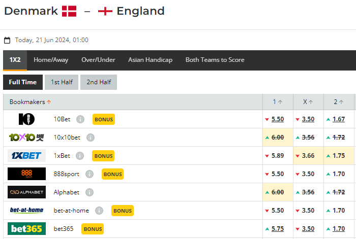 배당률 역시 이전 슬로베니아 - 세르비아 와 동일한 수준의 배당을 부여하고 있는데, 이는 잉글랜드를 대부분의 요소를 포함햐여 봤을 때도 더 강하다고 판단하는 오즈메이커의 의견이다.