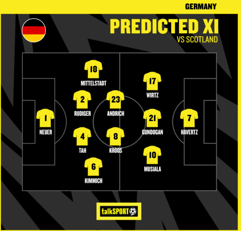 공격자원에서 클로리안 비르츠는 독일 분데스리가를 우승으로 이끈 자원이고, 2003년생인만큼 세대교체의 주요 선수이기도 하다. 무려 11골에 11어시스트를 기록했다. 비르츠가 클럽에서와 같은 활약을 A매치에서도 보여준다면 독일의 강점이 두드러질 수 있다.