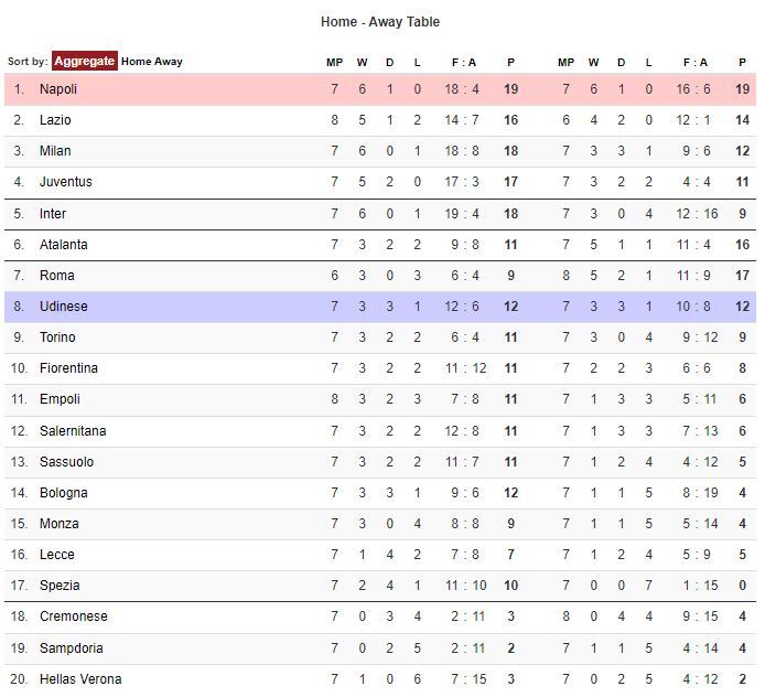 우디네세는 초반 챔스권이 가능할 것 같은 포스를 보이다가 DTD 모드를 보이면서 승점 챙기기에 꾸준히 실패하고 있다.