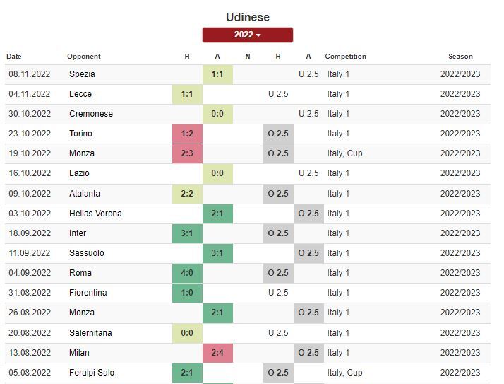 우디네세는 코파이탈리아를 제외하고는 클럽대항전에 참여하지 않았다. 리그에서 갑자기 10월 이후 승리를 거두지 못하고 있다.