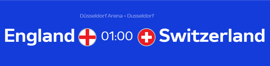잉글랜드는 크리스탈팰리스의 마크 게히가 나오지 못할 것으로 보인다. 이 자리는 콘사 (애스턴빌라) 가 대신할 확률이 높다. 공격진의 변화는 크지 않고 어떤 경기력을 보여줄지만 남았다. 경고를 받으면 4강에 나오지 못할 선수들이 많기 때문에 주의해야 한다. 반면, 스위스는 늘 그렇듯 본인들이 할 수 있는 최선의 무기들을 사용할 것이다. 스위스 역시 자카, 은도예, 프라우러를 비롯하여 다양한 선수들이 경고누적의 위기에 있다.