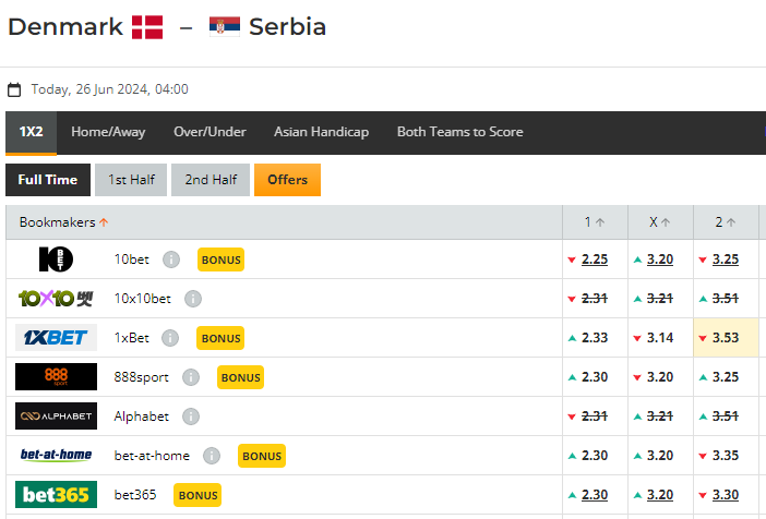 세르비아가 공격적인 부분이 분명하며 기준점은 2로 주어졌다. 덴마크는 분명 수비적인 운영을 할 수 있지만, 잉글랜드 상황에 따라 전개를 바꿀 수 없다.