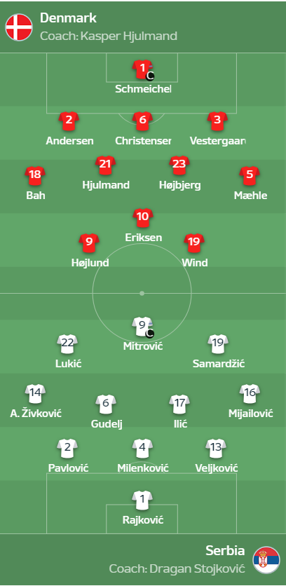 C조는 잉글랜드만 16강에 사실상 합류한 채 혼전이 펼쳐지고 있다. 그 중 가장 중요한 경기가 바로 덴마크 vs 세르비아이다. 덴마크는 2무, 세르비아는 1무1패로 경기를 치른다.