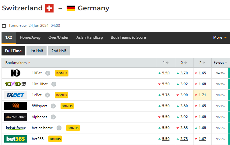 유로2024, 스위스 vs 독일 (조별예선 A조) + 가능한 시나리오